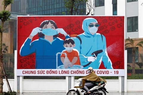 | Un panneau sur la lutte contre le COVID-19 à Hanoï. |