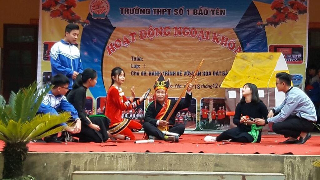 | Spectacle de chant traditionnel "then" des Tày au lycée de Bao Yên 1, dans la province de Lào Cai (Nord). |