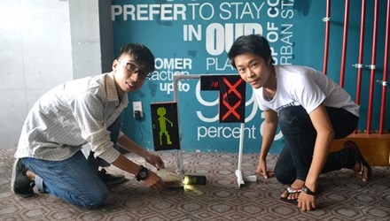 | Le feu tricolore «intelligent» de Nguyên Tiên Dung et Lê Nhât Hung. |