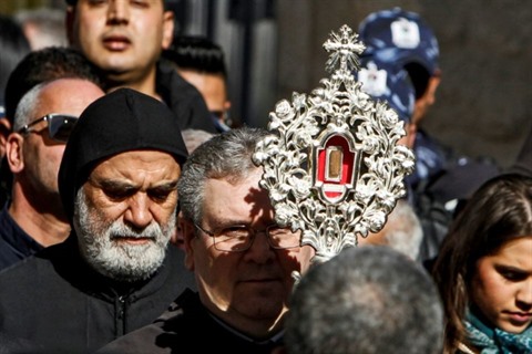 Une procession de plusieurs centaines de fidèles a accompagné la relique jusqu'à l'église Sainte-Catherine, qui jouxte la basilique de la Nativité.