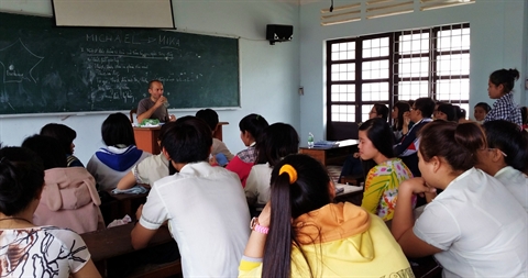 | Michaël Laurençon en visite dans une université vietnamienne. |