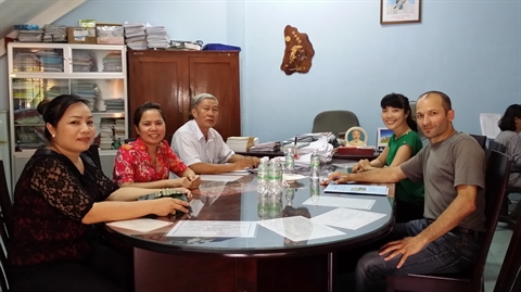| Michaël Laurençon (à droite) en réunion dans une université vietnamienne. |