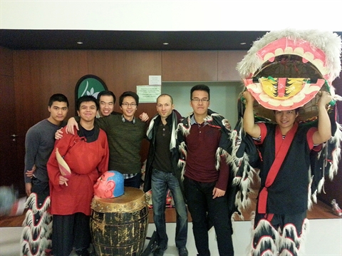 | Michaël Laurençon (3e à droite) avec ses étudiants vietnamiens à Bordeaux. |