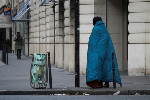 | Un SDF le 30 novembre 2017 à Paris où un froid sibérien est attendu dans les prochains jours. |