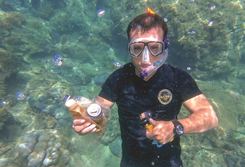 Ses amis sur Facebook sont habitués aux photos de Trung Dào (son pseudo Facebook) apparaissant à côté d’un bateau plein d’ordures. Tantôt c’est un filet géant, tantôt c’est un sac contenant des centaines de canettes et de bouteilles en plastique, ou encore un fût en métal. Ce genre de déchets, il les ramasse tous dans les récifs coralliens à Dà Nang, Hôi An, Nha Trang (Centre)... Il lui arrive aussi de plonger avec un assistant.