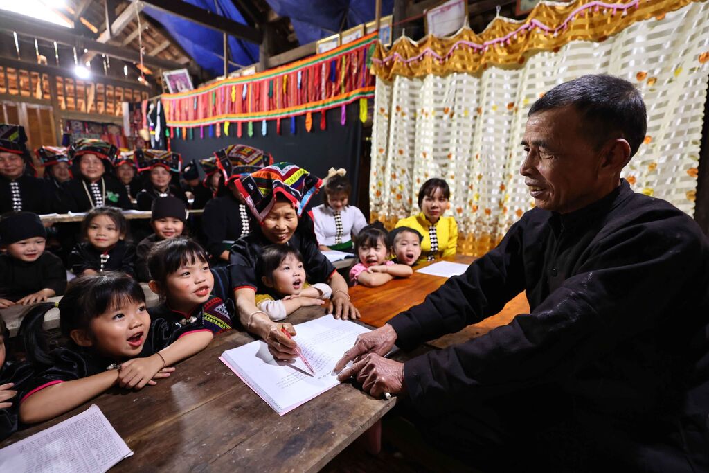 | Quàng Van Khoa accompagne les habitants locaux dans l’apprentissage de la langue thai. |
