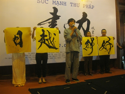 Dans l’après-midi, ce calligraphe japonais a pris part à un échange avec le Club de calligraphie de l'UNESCO et l’artiste vietnamien Trung Hiêu, membre du Club vietnamien des jeunes calligraphes.