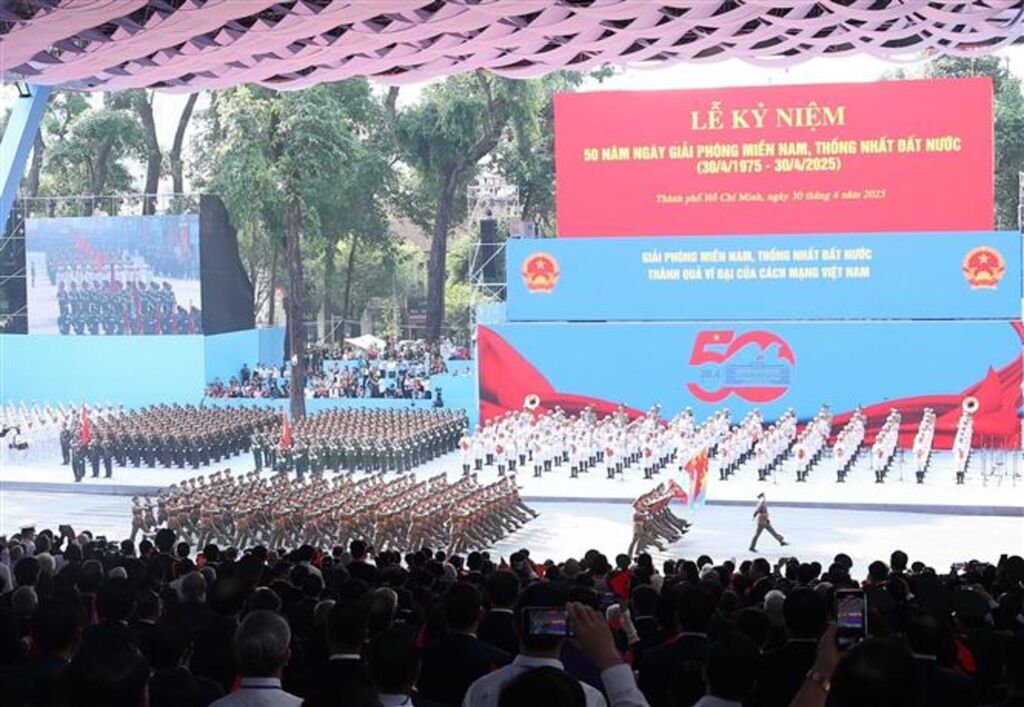 Une cérémonie nationale et un défilé ont lieu le 30 avril au matin à Hô Chi-Minh-Ville pour célébrer le 50e anniversaire de la libération du Sud et de la réunification nationale (30 avril 1975).