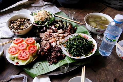 | Un repas typique servi aux touristes. |