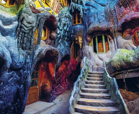 Avec ses murs et escaliers courbes colorés, les touristes venant à l’hôtel Hang Nga sont immergés dans un monde féérique inspiré des peintures du peintre surréaliste Salvador Dali.