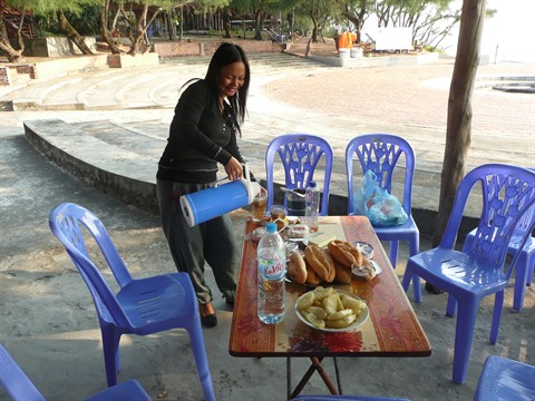 Comme s’annoncera bien le lendemain, au moment où nous découvrirons avec stupeur le petit déjeuner occidental que nous aura préparé mon extraordinaire épouse, au bord de la plage. Miel, beurre, orange, fromage, pain, confiture, œufs, elle avait tout emporté dans cet immense sac que nous nous étions escrimés à transporter de voiture en bateau et de bateau en touk-touk, en jurant qu’il n’y avait que les femmes pour emporter autant de choses pour deux jours ! Comme quoi, ma grand-mère avait raison quand elle me disait de tourner sept fois la langue dans ma bouche avant de parler !