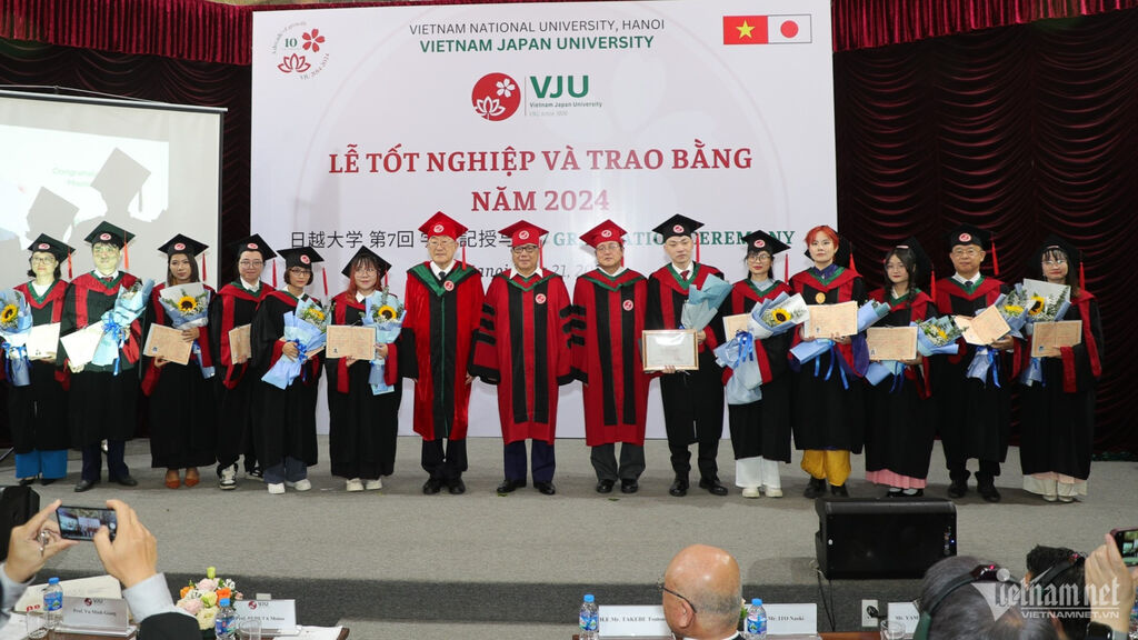 | Kato Mitsuru (2e, droite) à la cérémonie de remise de diplôme de master à l'Université Vietnam - Japon. |