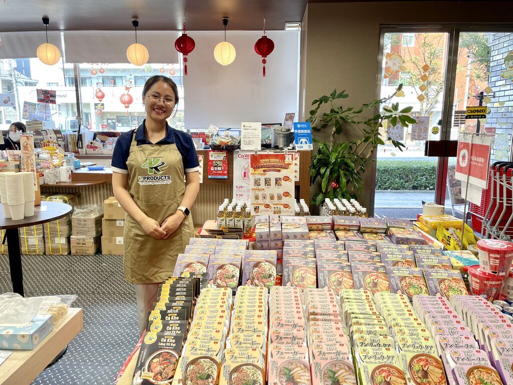 | Des produits de la marque K-Products inventée par Mai Thi Thu Trang et Trân Bao Khanh dans un supermarché au Japon. |