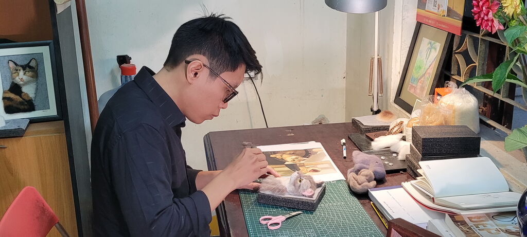 "J’ai découvert le feutrage à l’aiguille il y a quelques années en visionnant sur Internet une vidéo d’un artisan japonais. Lorsque mon travail d’architecte a été suspendu en raison de la pandémie, j’ai appris cette technique. Grâce à mon amour pour les chiens et les chats, plus j’en fais, plus je deviens passionné. Petit à petit, cette passion est devenue mon métier", raconte Thê Vo.