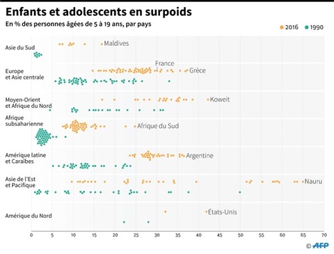 Alors que ce problème était quasiment inconnu dans les pays à faible revenu en 1990 (seuls 3% des pays de cette catégorie comptaient plus de 10% de jeunes enfants en surpoids), les trois quarts d'entre eux doivent désormais y faire face.