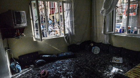 | Dégâts sur le site de l'attentat meurtrier en plein mariage, le 21 août à Gaziantep, en Turquie. |
