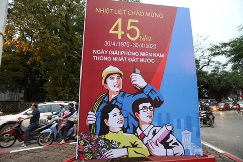 | Une affiche à l'occasion du 45e anniversaire de la réunification nationale. |