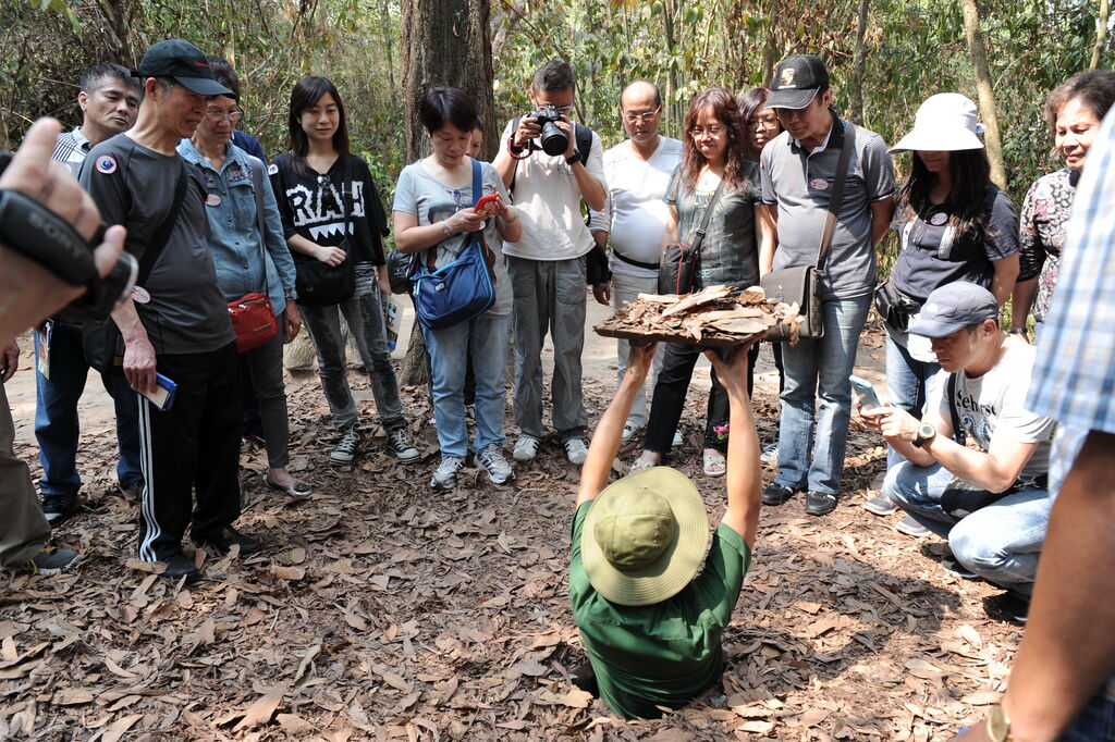 | Touristes à la découverte des tunnels de Cu Chi, un vestige historique au Sud. |