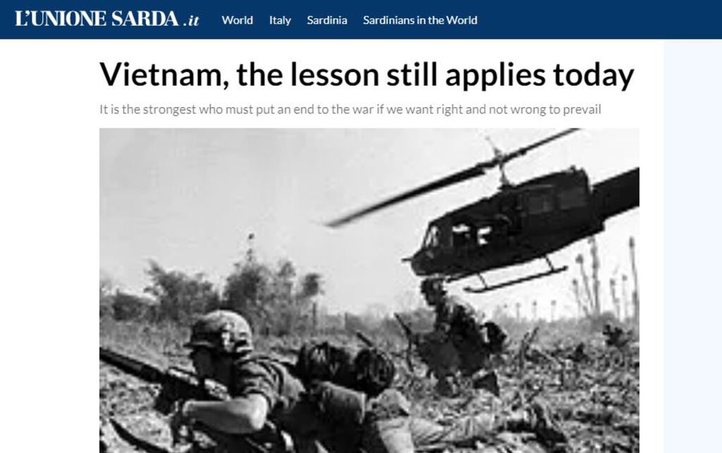 Dans l’article intitulé Vietnam, la leçon s’applique encore aujourd'hui, l’auteur Antonio Barracca souligne que le Vietnam, alors pays pauvre et majoritairement agricole, a réussi à vaincre les armées de deux puissances mondiales.