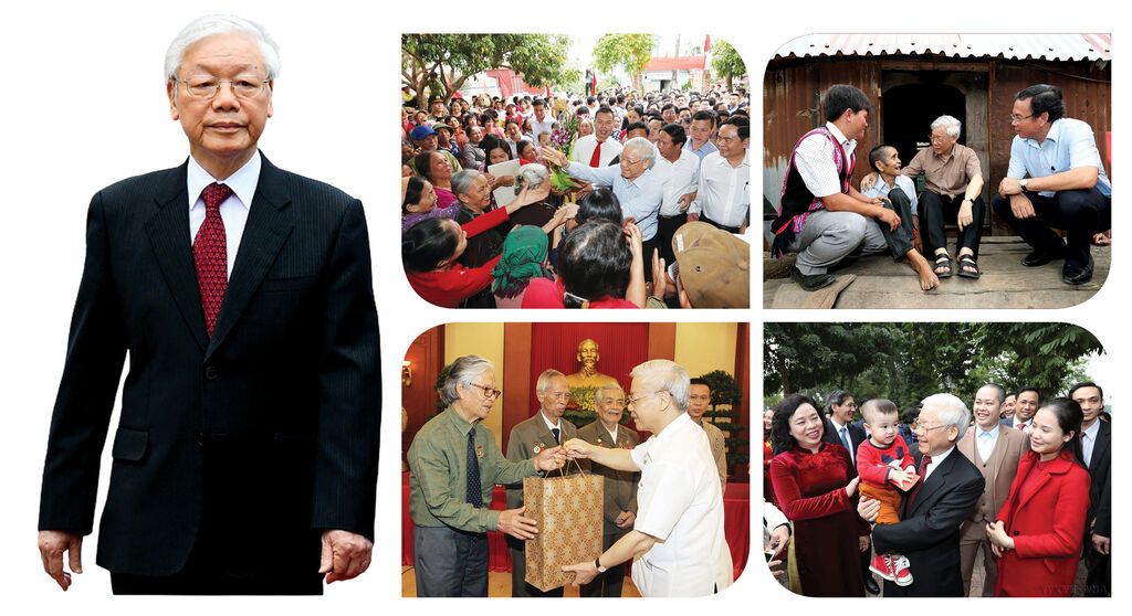 Durant ses fonctions simultanées de président de la République, président du Conseil national de défense et de sécurité et commandant des forces armées populaires, le camarade Nguyên Phu Trong a toujours veillé à construire une armée et une police fortes et solidaires. Ses pensées ont toujours été tournées vers le peuple comme sujet et centre du processus de Renouveau.