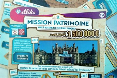 | Jeu à gratter de la Francaise des Jeux au bénéfice du Loto du patrimoine. |