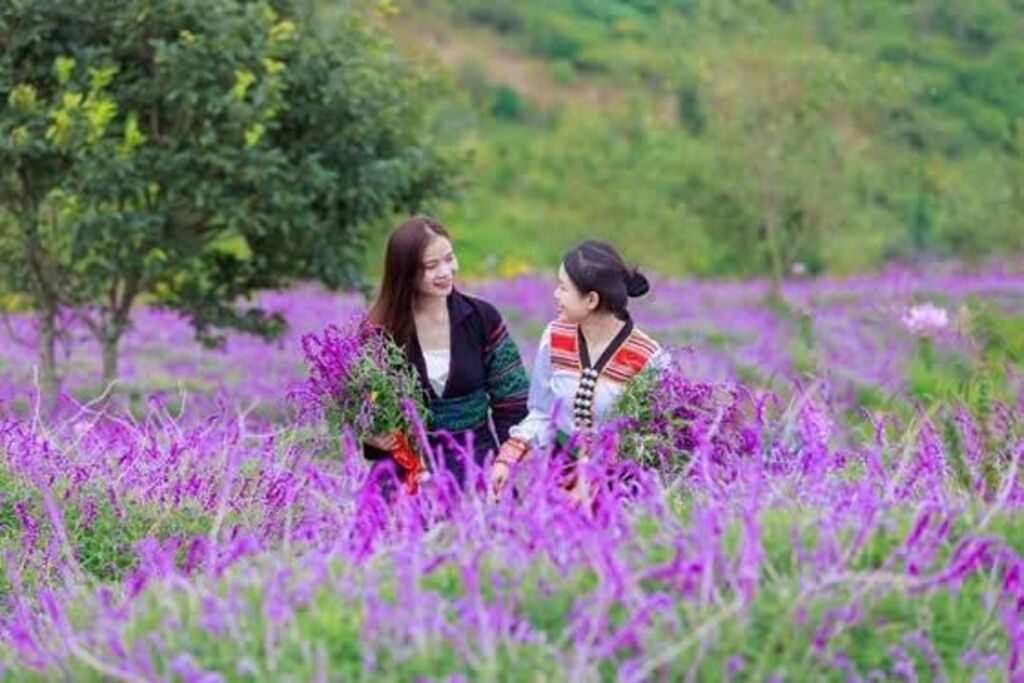 Le long de la voie ferrée de Muong Hoa menant à la station de téléphérique de Fansipan, un vaste champ de 15.000 m² de fleurs violettes s'étend jusqu'à l'horizon. Les fleurs violettes s'harmonisent avec les montagnes et le ciel environnants, formant un paysage romantique et poétique rappelant une peinture au lavis d'encre.