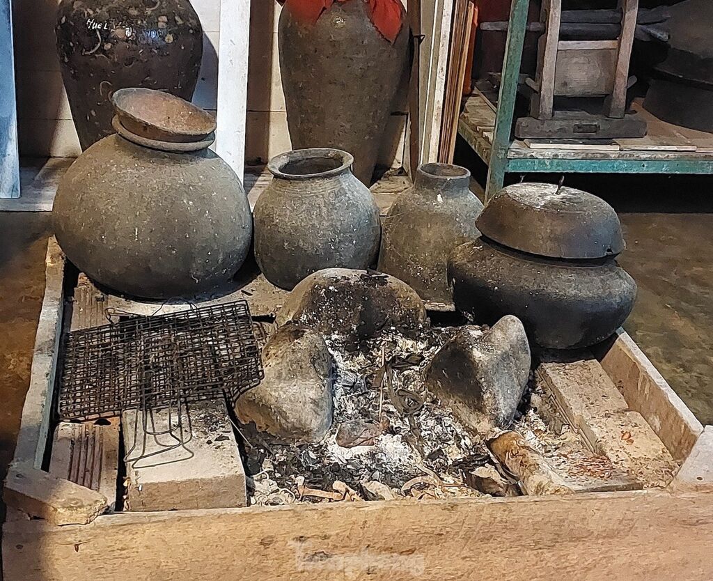 La cuisinière à bois est située au ras du sol. Les visiteurs peuvent se rassembler autour du feu et déguster du café, une spécialité du terroir.