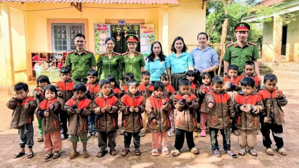 Le 22 décembre 2025, après plus de 100 km de routes sinueuses, les jeunes policiers de la brigade criminelle ont atteint le hameau O5, dans la commune montagneuse de Vĩnh Sơn, peuplée majoritairement de l’ethnie Ba Na. Là, 162 colis composés de vêtements chauds, de couvertures et de produits de première nécessité, d’une valeur totale de 50 millions de dôngs, ont été remis aux habitants et aux élèves.
