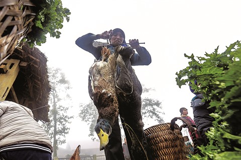 | Des canards élevés par les Hà Nhi noirs. |