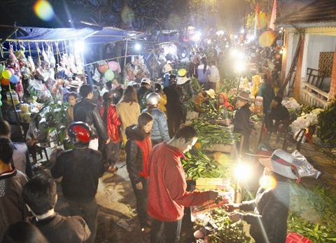 Les portes du marché, qui marque le début des fêtes printanières de la région, ouvrent à 01h00 du matin. Les visiteurs y viennent pour se souhaiter chance et succès ainsi que pour acheter des produits agricoles à des prix avantageux : feuilles de bétel, noix d’arec, viandes et spécialités locales, canne à sucre, sachets de sel, légumes, etc. Acquérir un produit à l’occasion de ce marché unique augure en effet d’une année heureuse. Les jeunes privilégient l’achat de sel, de 2.000 à 5.000 dôngs le sachet, censé porter chance en amour.