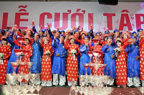 | Cérémonie de mariage collectif en 2014, le 15 octobre à Hô Chi Minh-Ville. |