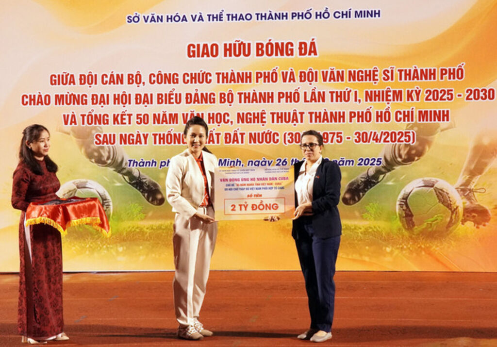 Après le match, les organisateurs ont remis 2 milliards de dôngs (76.900 dollars), collectés auprès des joueurs, des entreprises et des supporters, à Ariadne Feo Labrada, consule générale de Cuba à Hô Chi Minh-Ville, en signe de solidarité avec le peuple cubain.