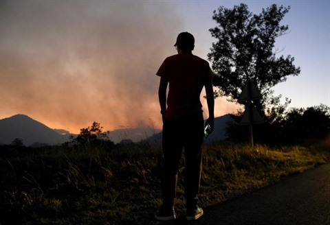 | Un homme observe l'incendie qui fait rage près de Bessèges (Gard), le 7 juillet. |