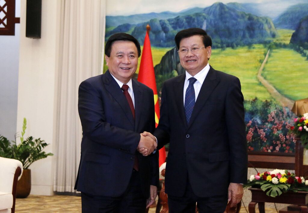 | Le Premier ministre laotien Phankham Viphavanh (droite) reçoit Nguyên Xuân Thang, membre du Bureau Politique, président du Conseil théorique central, directeur de l’Académie politique nationale Hô Chi Minh. |