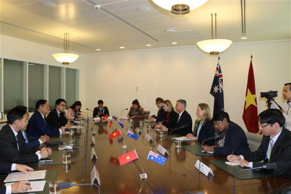 | Rencontre entre Nguyên Trong Nghia (2e à gauche) avec Matthew Thistlethwaite (4e à droite), ministre australien des Affaires étrangères et du Commerce, également ministre de l’Immigration. |