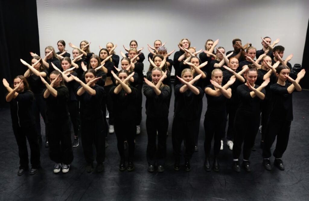 | Des élèves exécutent une danse de "murmuration" qui imite le mouvement d'une volée d'oiseaux au Bird College de Sidcup, dans le sud-est de Londres, le 2 décembre. |