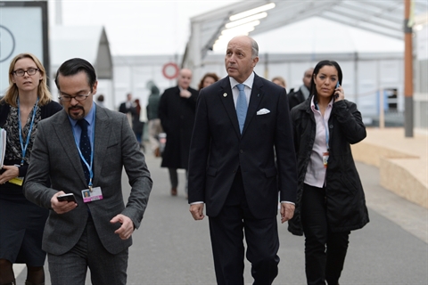 | Le ministre français des Affaires étrangères Laurent Fabius (2e à droite), le 2 décembre au Bourget. |
