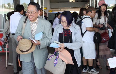| Arrivée des visiteurs japonais à l'aéroport de Dà Nang. |