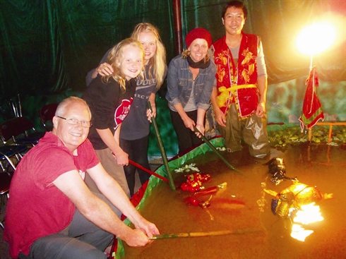 De retour à Hanoi après un mois de tournée en Corée du Sud, Phan Thanh Liêm a repris ses activités théâtrales à domicile. Son fils de quatre ans le suit de près, n’ayant d’yeux que pour les croquignolettes marionnettes. «Mon fils sera la 8e génération de ma lignée liée aux marionnettes», assure avec fierté l’artiste.