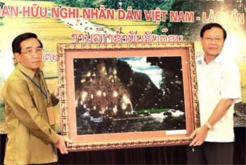 | Le ministre lao de l'Éducation et des Sports et président de l'Association d'amitié Laos-Vietnam, Phankham Viphavanh, en visite à la province de Ninh Binh, le 16 juillet. |