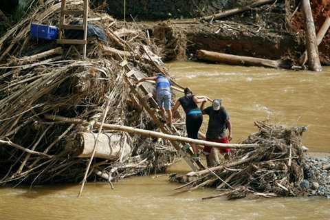 Depuis deux semaines, vivres, eau et médicaments arrivent par les airs grâce à un hélicoptère. Mais les habitants réclament un pont "pour pouvoir sortir (leurs) véhicules et partir en cas d'urgence ou si un glissement de terrain se produit", explique M. De Jesus.