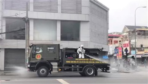 Désinfection dans une rue à Hô Chi Minh-Ville pour lutter contre le COVID-19, le 1er juin.