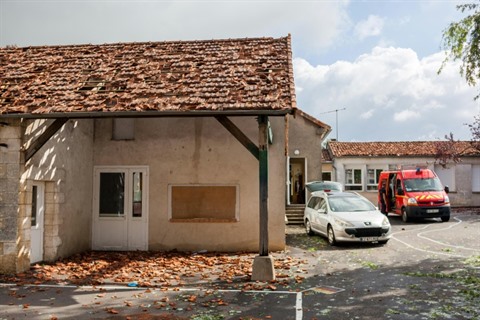| Maisons aux toits endommagés par les orages à Saint-Sornin, en Charente, le 5 juillet. |