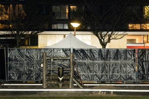 | Une bâche cache la scène d'une fusillade dans le centre-ville d'Amsterdam, le 26 janvier 2018. |