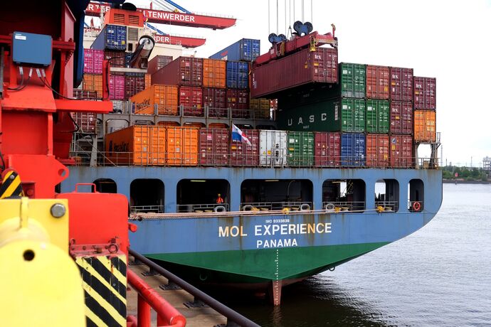 | Le cargo "Polesie" est remorqué dans le port de Cuxhaven dans le Nord de l'Allemagne, le 25 octobre. |