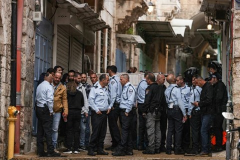 | Forces de l'ordre israéliennes derrière un cordon de sécurité sur les lieux d'une fusillade dans la Vieille Ville de Jérusalem, le 21 novembre. |