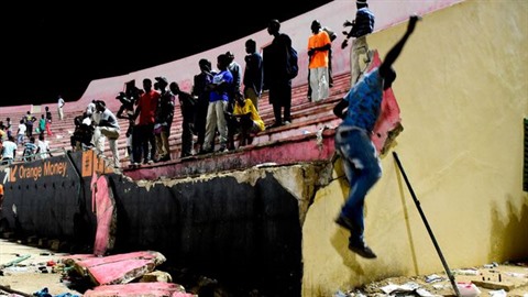 Des spectateurs d'un match de football dans le stade de Demba-Diop de Dakar, au Sénégal, où un mur s'est affaissé le 15 juillet 2017. Photo : AFP/VNA/CVN |