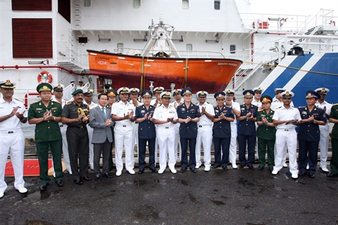 | Cérémonie d'accueil des membres de l'équipage du navire Samudra Paheredar des Gardes-côte indiennes, le 14 octobre au port de Dà Nang (Centre). |