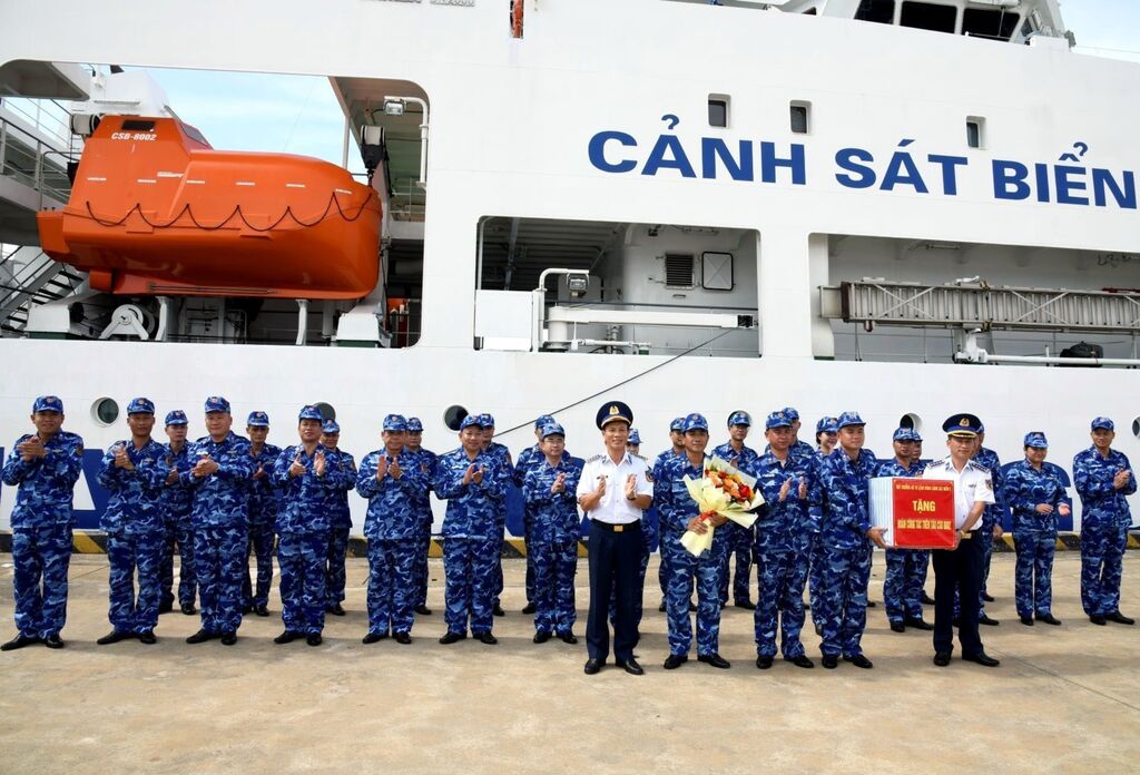 | La délégation du navire CSB 8002 des garde-côtes vietnamiens au port de Ky Ha, province de Quang Nam, avant le départ pour visiter les Philippines. |