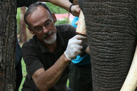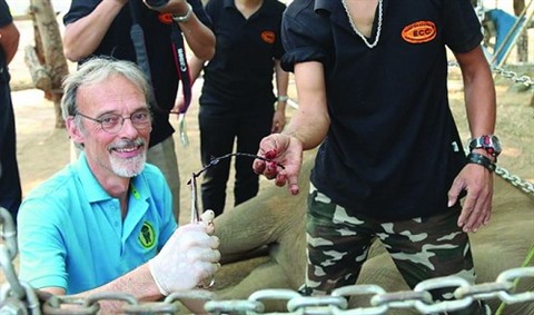 | Deux ou trois fois par an, Willem Schaftenarr s’envole pour le Vietnam afin d’y soigner les derniers éléphants. |